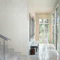 This geometric wallpaper features a honeycomb pattern lending to its modern design. Its stunning off-white, teal, and metallic hues add a layer of depth perfect for any space. Kendall is an unpasted, non woven wallpaper.