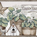 With fresh geraniums, potted plants, bird houses and more, this border brings a sweet country charm to your home. Its weathered details add a vintage flair to its blossoming plants. Geranium is a prepasted, non woven blend border.