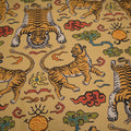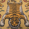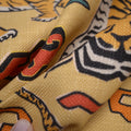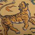 Discover the Tiger Republic 380 Saffron Covington Fabric, featuring a striking tiger print set against a rich harvest gold background. This fabric combines bold, vibrant spice colors with a sophisticated Asian-inspired global design, perfect for adding a refined yet adventurous touch to your décor or fashion projects. Its dynamic pattern and warm tones bring an elegant statement to any space.