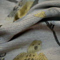 Birdseye View Spa is a pretty blue, grey, and gold bird patterned fabric from Swavelle Mill Creek in stock and available at The Fabric Co.