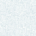 A blue geometric pattern slinks its way across a crisp white background. Its watercolor style adds a whimsical touch to its unique and modern look. Ramble is an unpasted, non woven wallpaper.