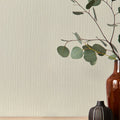 Solid color is subtly enhanced by a tactile, woven texture in this versatile wallpaper. Seen here in ivory. Naim is an unpasted, vinyl wallpaper measuring 20.9 inches wide by 33 feet long, covering approximately 57.5 square feet per roll.