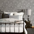 With a deep brown hue, owls, and trailing vines, this eclectic wallpaper has an earthy feel. Its bright white pattern pops against its dark cocoa background, creating a dazzling design. Parliament is a prepasted, coated heavyweight paper wallpaper.