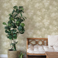 Soft silhouettes of pressed flowers and their greenery form delicate columns along a dappled backdrop. Featured here with cream-hued silhouettes against light green. Izara is an unpasted, vinyl wallpaper measuring 20.9 inches wide by 33 feet long, covering approximately 57.5 square feet per roll.