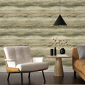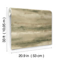 Wide washes of color form soft, organic striations accented by subtle metallic touches. Seen here in a mossy green palette embellished with brushes of metallic gold. Ayla is an unpasted, vinyl wallpaper measuring 20.9 inches wide by 33 feet long, covering approximately 57.5 square feet per roll.