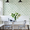 Enjoy timeless dimension with this abstract geometric design. The green lines are clustered against the white linen backdrop to create an illusion of 3D columns. Demi is an unpasted, non woven wallpaper.