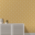 A geometric pattern effortlessly complements a linen inspired background in this classic trellis wallpaper. Its palette of cheerful yellow and crisp white hues will brighten up any space. Osterlen is an unpasted, non woven wallpaper. Shop Terence Conran's Plain Simple Useful wallpaper book from A Street Prints and Brewster at The Fabric Co. today!
