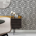 Create a bold and modern look with this stunning wallpaper. A black geometric print pops against a crisp white background. Helios is an unpasted, non woven wallpaper. See pattern 2902-25553 on page 3 and order a sample today!