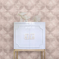 This abstract geometric has visual as well as tactile depth with overlapping circles and raised ink. In a dusty blush, the pattern adds a hint of color to walls that is playful while remaining sophisticated. Alchemy is an unpasted, non woven wallpaper.