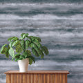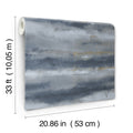 Wide washes of color form soft, organic striations accented by subtle metallic touches. Seen here in an indigo palette embellished with brushes of metallic platinum. Ayla is an unpasted, vinyl wallpaper measuring 20.9 inches wide by 33 feet long, covering approximately 57.5 square feet per roll.