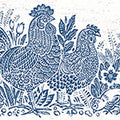 With a block print design, this country inspired border is full of charm. Clucking hens and chicks mingle amongst blooming flowers and proud roosters. Parton is a prepasted, non woven blend border.