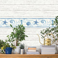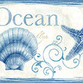 The words sea, beach, and ocean float among this coastal inspired border. With a relaxing design featuring starfish, sea shells, and scrolls this border is the perfect addition to place in your home. Island Bay is a prepasted, non woven blend wallpaper.