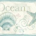 Seafoam green and teal meld effortlessly in this coastal arrangement of starfish, sea shells, and scrolls. Bring the treasures of the sea to your walls with this beachy inspired border. Island Bay is a prepasted, non woven blend wallpaper.