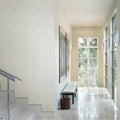 Accented by silver and light blue hues, this distressed off-white wallpaper has a glamorous edge. Its roughly painted design and soft raised inks are perfect for creating a dimensional look. Kendall is an unpasted, non woven wallpaper.