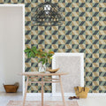 With a geometric print and concrete inspired design, this wallpaper is truly dazzling. Its palette of navy, gold, seafoam and off-white hues has a refined and sophisticated feel. Cerium is an unpasted, non woven wallpaper. Shop 2908-25310 from The Fabric Co. for your walls today!