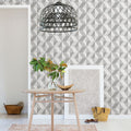 With a shimmering silver and grey geometric design, this faux concrete wallpaper has a contemporary flair. Distressed accents and textural elements lend to its stone inspired look. Cerium is an unpasted, non woven wallpaper. Shop 2908-25314 from The Fabric Co. for your walls today!