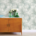 A subtle geometric pattern peeks out from under a distressed design in this abstract wallpaper. Muted turquoise, sage, and grey hues meld to create a soothing print. Perspective is an unpasted, non woven wallpaper. Shop 2908-87109 from The Fabric Co. for your walls today!