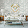 A dynamic design, this large-scale geometric is one part retro, one part Scandinavian. The soothing pale blue and grey palette will establish a tranquil feel for a room. Mod Peaks is an unpasted, nonwoven wallpaper.