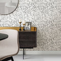 Sophisticated with an abstract flair, this wallpaper is effortlessly chic. Black brush strokes frolic across a crisp white background. Willy Nilly is an unpasted, non woven wallpaper. See pattern 2902-25506 on page 33 and order a sample today!