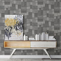 Glamorous and contemporary, this shimmering geometric wallpaper has the look of stacked stones. Realistic shading and raised inks lend to its 3D effect while shades of dark grey add a moody edge. Gompers is an unpasted, non woven wallpaper. Pattern 2922-25354 from A Street Print's Trilogy wallpaper book by Brewster would make a beautiful addition to any room in your home!