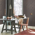 This luxurious wallpaper has a stunning geometric design. Rose gold inks and grey hues meld to create a stunning print. Mason is an unpasted, solid sheet vinyl wallpaper.