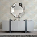 Subtle blue and seafoam hues accent a honeycomb print in this grasscloth inspired design. Its intricately woven pattern and melding of grey hues create a dimensional effect. Jabari is an unpasted, acrylic coated paper wallpaper.