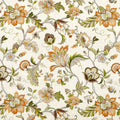 Brissac Amber is a pretty neutral cream fabric with a rusty orange, green, and grey Jacobean floral print from P Kaufmann. Transform your living space with this bold, daring fabric! Brissac Amber is the perfect blend of neutral and vibrant colors, boasting a Jacobean floral print in shades of rusty orange, green, and grey. Embrace adventure and add a touch of character to any room.