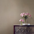 The burnished palette of metallic and pearlescent plain wallcoverings of pattern Oasis wrap any space in luxurious shine and sophisticated color.