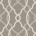 Light grey lattice curve and weave through this neutral taupe wallpaper.