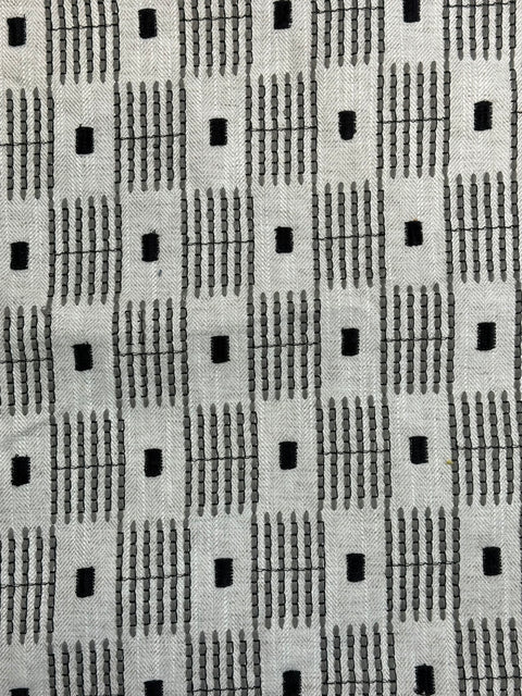 Add some character to your space with Shortcut Smoke Swavelle Mill Creek. This unique fabric features an embroidered geometric design that adds texture and interest. Elevate any project with this quirky and playful touch!