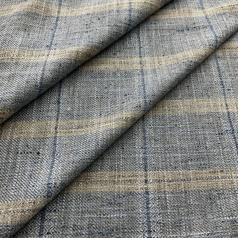 Track Record Denim Blue Tan Stripe Window Pane Plaid Swavelle Mill Creek Fabric